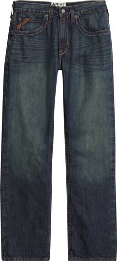 Signature stitchwork and logo accents define perfectly whiskered and weathered jeans cut from sturdy nonstretch denim.