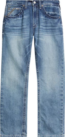 A faded wash enhances the timelessly cool vibe of mid-rise jeans cut in a bootcut silhouette that's comfortably relaxed through the waist, hips and thighs.