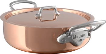 The Mauviel M’3 S 3.2-Quart Copper Rondeau with Lid is designed for precise cooking and versatile performance. Constructed with a tri-ply combination of 18/10 stainless steel, aluminum, and copper, this rondeau delivers fast heating, even heat distribution, and excellent temperature control. The polished copper exterior heats quickly and responds instantly to temperature adjustments, while the aluminum core ensures even heat across the wide cooking surface. The stainless steel interior preserves the natural flavors of food and allows for easy cleanup. The wide, shallow design is ideal for braising meats, sautéing vegetables, reducing sauces, and preparing one-pan meals. The broad base allows for efficient browning, while the lower sides make it easy to stir and turn ingredients during cooking. A tight-fitting lid helps retain heat and moisture while dishes cook, allowing flavors to develop fully. The cast stainless steel handles are riveted for durability and provide a secure, balanced grip. A flared rim allows for clean, drip-free pouring. Compatible with gas, electric, halogen, and oven use. For induction cooktops, an interface disc is required (sold separately). Hand washing is recommended to maintain the copper finish. This copper rondeau is ideal for braising, sautéing, and simmering, offering professional-level precision and control.