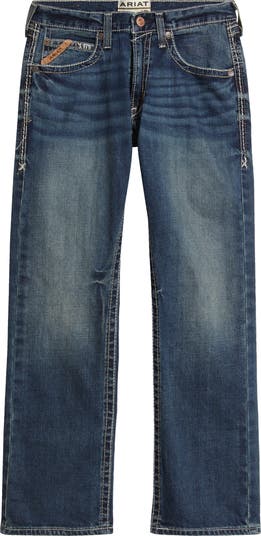 A faded wash enhances the ruggedly cool vibe of mid-rise jeans cut in a modern straight-leg silhouette that's fitted through the hips and thighs.