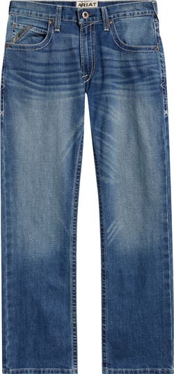 Designed with a mid-rise silhouette and flexible feel, these medium-wash jeans feature faded whiskering for lived-in character. Extra-deep front pockets offer secure storage for everyday essentials.