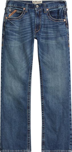 A faded wash enhances the ruggedly cool vibe of mid-rise jeans cut in a modern straight-leg silhouette that's fitted through the hips and thighs.