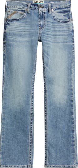 These straight-leg jeans are fitted through the hip and thigh for a slim, streamlined look that never feels restrictive. Crafted with stretch and finished with faded whiskering, they deliver a broken-in feel and a clean, confident silhouette with a low-rise waist.
