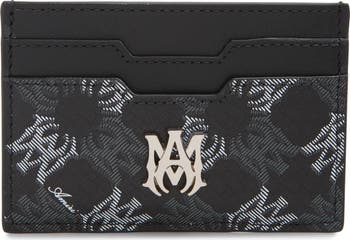 The brand's quad print lends signature style to this coated linen-and-cotton card case embellished with a gleaming MA emblem.