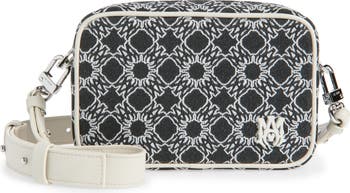 A mesmerizing labyrinth of Amiri’s quad monogram weaves across the denim of this camera bag to create a visual rhythm that’s impossible to ignore. With a removable leather crossbody strap, this piece is as adaptable as it is striking.
