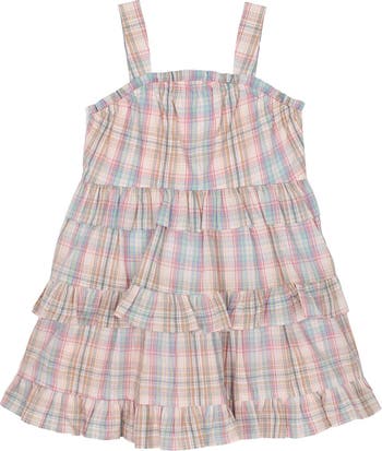 Mabel and Honey Orchid Farm Girls' Pastel Plaid Tiered Dress, Nordstrom Exclusive.