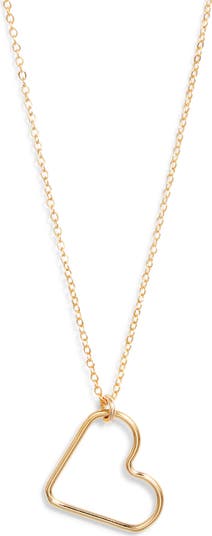 A delicate wire-heart pendant makes a romantic statement on this dainty 14-karat gold fill necklace.
