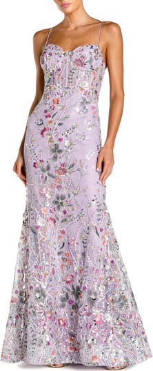 Spaghetti Strap Multicolor Floral Embroidered Trumpet Gown