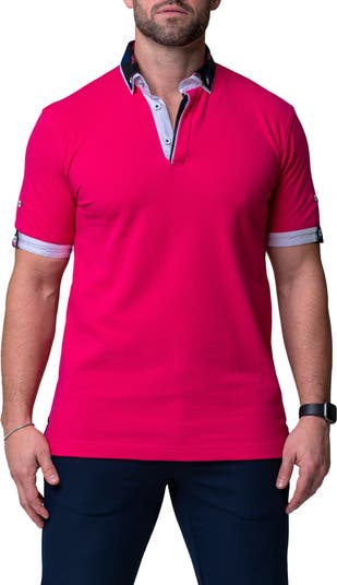 Maceoo Mozartsolidskull Fuchsia Piqué Button-Down Polo, Main, color, Pink