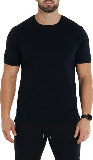 Cut at a slightly longer length so it doesn't disappear from sight when layered, this classic T-shirt is crafted in stretch cotton for comfy softness.
