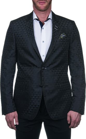 Make a style statement with this jacquard jacket. Perfect for your next evening soiree, this show-stopping piece features a skull print design. Continue the sartorial goodness. Fit: this style fits true to size.