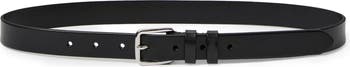 This classic leather belt has a silvery square buckle and dual keepers that neatly secure the tail for a polished look.