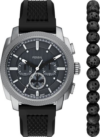 Though the dashboard-gauge dial may tempt you to floor it, we encourage you to take some accurately tracked time to admire the aesthetic and impressive functionality of this chronograph watch featuring a rugged, durable silicone strap and paired with a black lava-stone beaded bracelet as a giftable set.