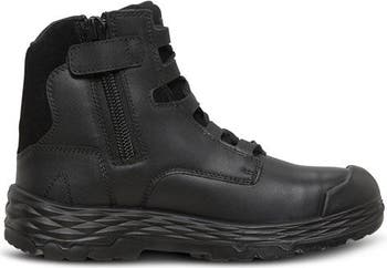 Designed for demanding job sites, the MACK Force 6 Inch Black Steel Toe Zip Work Boot delivers professional grade protection with comfort focused engineering. Built for workers who face sparks, water exposure, or frequent boot removal, this style combines safety compliance with all day wearability. A steel safety toe meets U.S. ASTM standards to protect against impact and compression hazards. The slip resistant TPU outsole is heat resistant up to 302°F and resists fuel oil breakdown, making it well suited for tough work environments. Anti static construction and a water shedding upper add another layer of job site readiness, while a reinforced scuff cap enhances durability in high wear areas. The side zip closure allows for quick on and off access, ideal for workers who need fast removal throughout the day. Underfoot, the modRIDE™ midsole is engineered using running shoe inspired technology to deliver sustained cushioning and reduced fatigue during long shifts. An anatomically shaped toe box and optimized heel geometry support natural walking mechanics, improving stability and comfort from clock in to clock out. Built for performance, protection, and ease of use, the Force 6 Inch Zip is a dependable choice for workers who need comfort without compromising safety.
