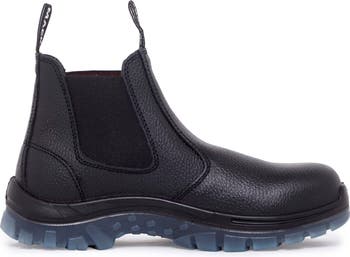 Designed for hardworking professionals, the MACK Tradie Slip On Steel Toe Work Boot delivers dependable protection, durability, and everyday convenience at a strong value. Built for general industry and job site use, this boot combines essential safety features with a streamlined slip on design that keeps your workday moving.\nA steel safety toe meets U.S. ASTM safety standards, providing reliable impact and compression protection. The slip resistant outsole offers stable footing on a variety of surfaces, while heat resistance up to 302°F and fuel oil resistance help withstand tough job site conditions. Anti static and water resistant properties add an extra layer of workplace compliance and comfort.\nThe double gusset slip on construction allows for easy on and off wear without sacrificing a secure fit. Underfoot, the durable TPU outsole outperforms traditional materials by resisting hydrolysis, microbial degradation, oils, acids, and organic fats. This results in extended boot life and consistent performance across demanding environments.\nEngineered for serious work and built to last, the Tradie Slip On is a practical choice for tradesmen seeking reliable protection without unnecessary extras.