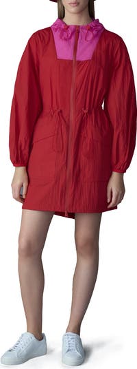 Easily packed along or packed away, this lightweight hooded raincoat made from recycled nylon also packs in a few style features, including balloon sleeves with binding at the cuffs and is totable as a shoulder bag when not in use.