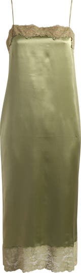Dial up the romance in this slinky slip-style midi dress cut from whisper-light silk traced with vintage-inspired floral lace.