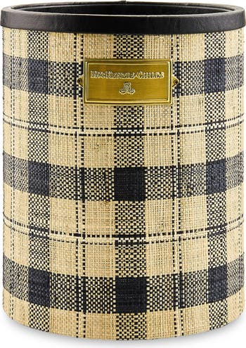 A woven plaid design and brass logo plate add to the preppy charm of this bin that can be used in the bathroom but also looks cute as a storage spot for knitting, pet toys, magazines and more.