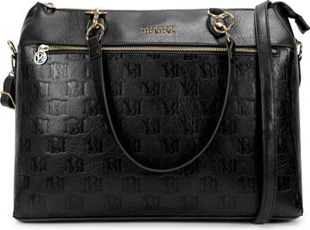 The Madalyn weekender tote bag is ideal for those seeking a stylish yet eco-friendly accessory. Expertly crafted from vegan leather and finished with a classic Badgley Mischka monogram print, it is suitable for any occasion. Comfortably fit all your essentials with the included shoulder strap and stylish interior pattern. DISCOVER BADGLEY MISCHKA Vogue has hailed Mark Badgley and James Mischka as one of the "Top 10" American Designers and as the darlings of the Hollywood set. The design duo has made their mark over the past three decades with glamorous, stylish, and wearable evening wear and accessories. accessories.