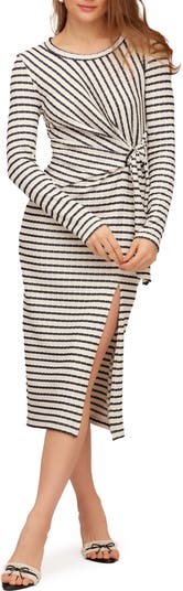 Maddie Side Tie Long Sleeve Cotton Blend Midi Dress
