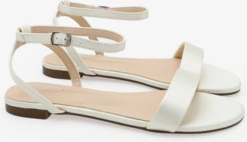Elegant satin flat sandals featuring an ankle strap for added comfort and support.