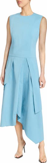 Sleeveless Midi Dress with Multi-Panel Asymmetric Skirt in Lightweight Stretch Cotton