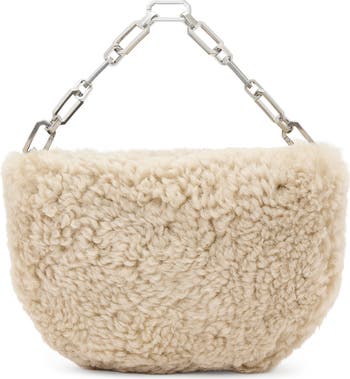 A chunky chain strap allows you to carry this version of the brand's popular hexagonal clutch over the shoulder, while the plush, eminently touchable genuine shearling adds statement texture.