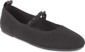 Monochrome studs punctuate the strap of a chic mary jane flat designed with a breezy knit upper and softly rounded toe. A cushioned sinsole provides all-day comfort while hanging with friends.