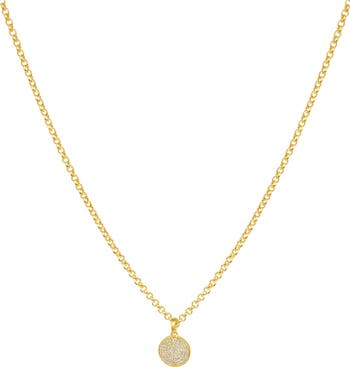 Pavé white topaz shimmers over the coin pendant of this understated stack-ready necklace.