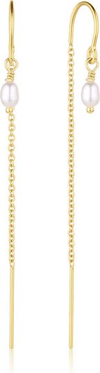 Lustrous freshwater pearls further the modern elegance of these delightfully dainty threader earrings.