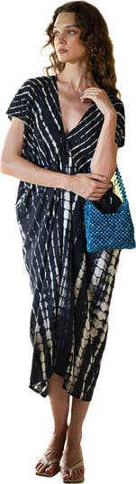 With a sweeping silhouette, this kaftan dress calls to mind dreamy days spent at the beach and the smell of a sea breeze.