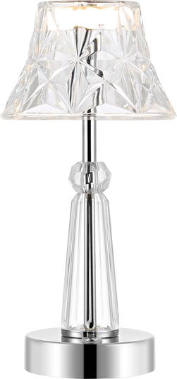 Add a touch of modern glam to a bar, console, or bath vanity with our sparkling faux crystal accent lamp. Made from durable clear acrylic, this cordless, rechargeable mini lamp features a bright LED bulb and a faceted clear shade. Use one to add sparkle to your dining room, console, living room, or bedroom.