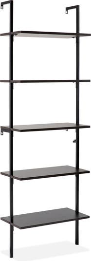 HAPPIMESS Madera Classic Industrial Shelf Wood Wall-Mounted Open Ladder Bookcase with Metal Frame, Alternate, color, Black/Black