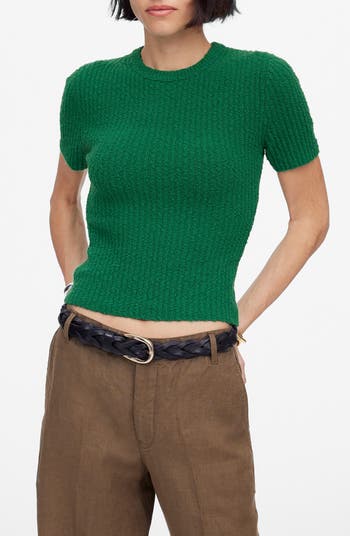 Coming in a cotton blend, this sweater-tee features a nubby-textured ribbed bouclé knit that feels good on the skin.