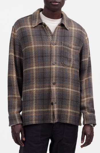 Designed with a relaxed, boxy fit, this shirt-jacket is a cool layering alternative on those weird in-between weather days (and comfy enough to wear inside). It's crafted from a chunky cotton-twill fabric in a broken-plaid pattern and is complete with patch pockets and faux-horn buttons.