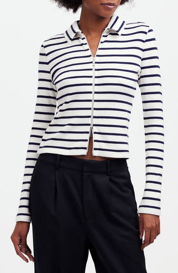 Featuring a cool two-way zipper down the front, this long-sleeved top comes in a weighty ribbed cotton.