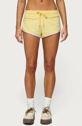 Soft terry cloth textures these easy elastic-waist shorts that are begging for the weekend.