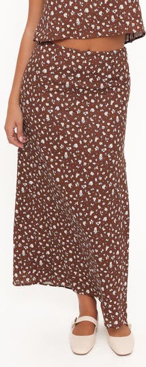 A lightweight linen-infused fabric brings easy warm-weather charm to this floral column maxi skirt popped with a leggy slit at the side.