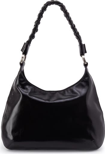 Glossy leather shapes the slouchy silhouette of this trend-right shoulder bag outfitted with plenty of interior pockets and a removable braided strap.