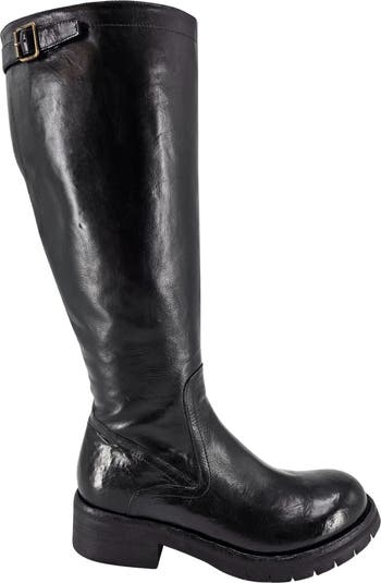 RUNS TRUE TO SIZE. Experience the rich heritage of Italian shoemaking with these luxurious, knee-high riding-style boots. Handcrafted in Italy, these boots feature a beautiful, burnished leather finish that lends each pair a unique, vintage character which develops a beautiful patina over time. The classic equestrian-inspired silhouette reaches just below the knee, offering a flattering and versatile fit, complemented by a subtle strap and buckle detail near the collar for minor adjustments and a touch of utility style. A robust, full-length zipper is integrated on the side for easy wear, and the construction is completed by a sturdy, stacked block heel and a durable lug sole, providing excellent traction and a contemporary, rugged edge. These boots are a testament to Italian design and quality, offering timeless style and enduring comfort suitable for any occasion and available in a range of essential colors.