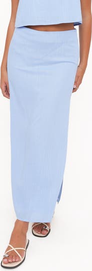 A lightweight linen-infused fabric brings easy warm-weather charm to this column maxi skirt popped with a leggy slit at the side.