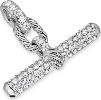 Pavé diamonds sparkle like lights on Madison Avenue on this sterling silver toggle pendant featuring the label's signature cabled texture.