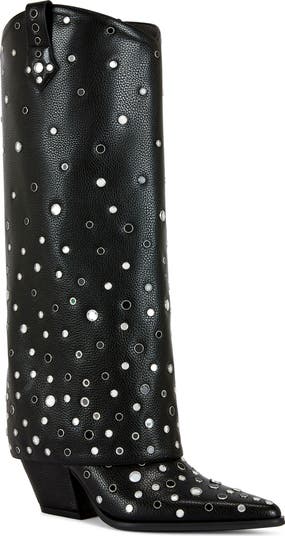 Crystal embellishments bring eye-catching sparkle to a Western boot balanced by a pointy toe and block heel.