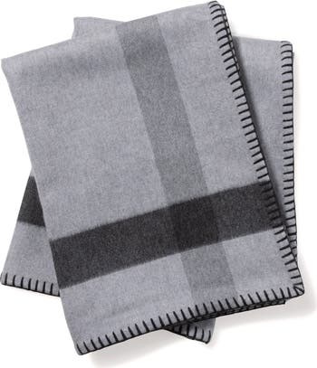 Indulge in the sumptuous warmth and softness of luxurious Mongolian cashmere with this reversible throw blanket edged in a rustic hand-stitched border.