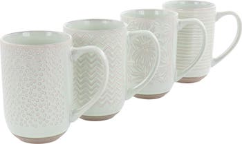 Enjoy a nice warm beverage with these Laurie Gates Madrina 19 Ounce 4 Piece Stoneware Assorted Wax Relief Designs. Each mug in this set has a different unique and beautiful design crafted with a wax relief technique. The designs stand out amazingly on top of the gorgeous mint green color. Made from durable stoneware, these mugs are built to last and are even dishwasher and microwave safe making them perfect for everyday use. Have a cozy night in with some tea or invite over a few friends for coffee, either way these mugs will be the center of attention. Item Dimensions: 5.25" x 5.10" x 3.50" Item Weight: 1.00lbs