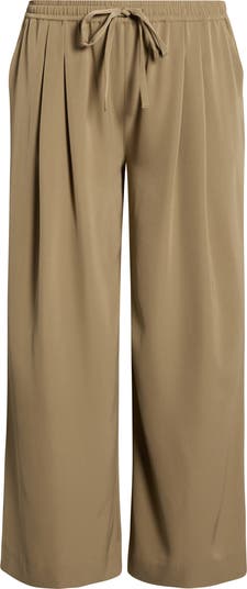 Pleated drawstring pants in a wide-leg silhouette are a comfy go-to style for lounging around the house or stepping out for casual get-togethers.