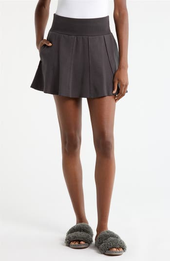 Raw-edge detailing brings a lived-in look to this stretch-cotton miniskirt finished with a subtly flared silhouette and side-seam pockets.
