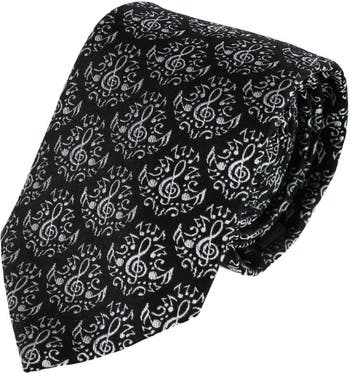 Strike the perfect chord between creativity and sophistication with Maestro's Mayhem Musical Note Novelty Silk Necktie. Woven from 100% silk, this luxurious accessory draped smoothly and shines with elegance, while its dynamic black-and-white motif captures the energy of music in motion. Ideal for concerts, formal events, or professional settings, it balances playful artistry with refined craftmanship. Whether gifted to a musician or worn as a personal statement piece, this tie transforms an outfit into a performance of style and individuality. Celebrate sophistication and artistry with a musical silk tie designed for unforgettable occasions. Measures 57 1/2 inches long by 3 inches wide.