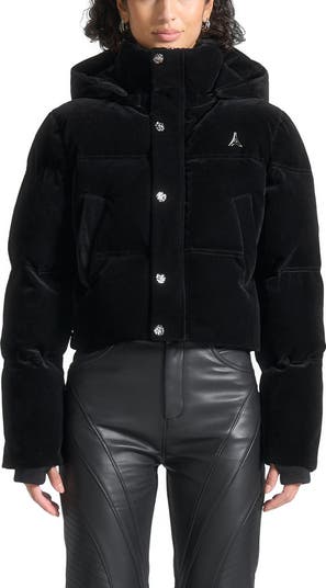 Crafted from velvet fabric, this jacket delivers a rich, textured finish that elevates its silhouette. Storm cuffs add both protection and refinement, while gold statement buttons introduce a bold focal point. A detachable hood allows for versatile styling, while adjustable waist tabs provide a personalised fit, balancing structure with comfort for adaptable wear.
