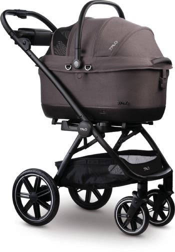 Why pet parents will love it: Keep your pet safe while on the go in this secure pet car seat designed with side-impact protection and integrated ISOFIX latches that pop out and connect to the vehicle's rigid latch anchor bars ensuring a secure and simple installation in seconds. This design allows you to switch cars easily without the need of a base. The durable mattress cover and interior fabric match the color of the carrier. It is treated with a zinc-based technology that provides antimicrobial protection and guards against odor-causing bacteria. The included Roscoe Trek stroller features a large basket, push-bar organizer, cupholder and a shoe-saving one-touch brake with a top tap. The engineered frame is strong and stable around every bend in the road, and with a touch of a button, the stroller folds up into a compact, easy-to-store design. The premium faux-leather accents on the car seat and stroller offer a luxe touch.